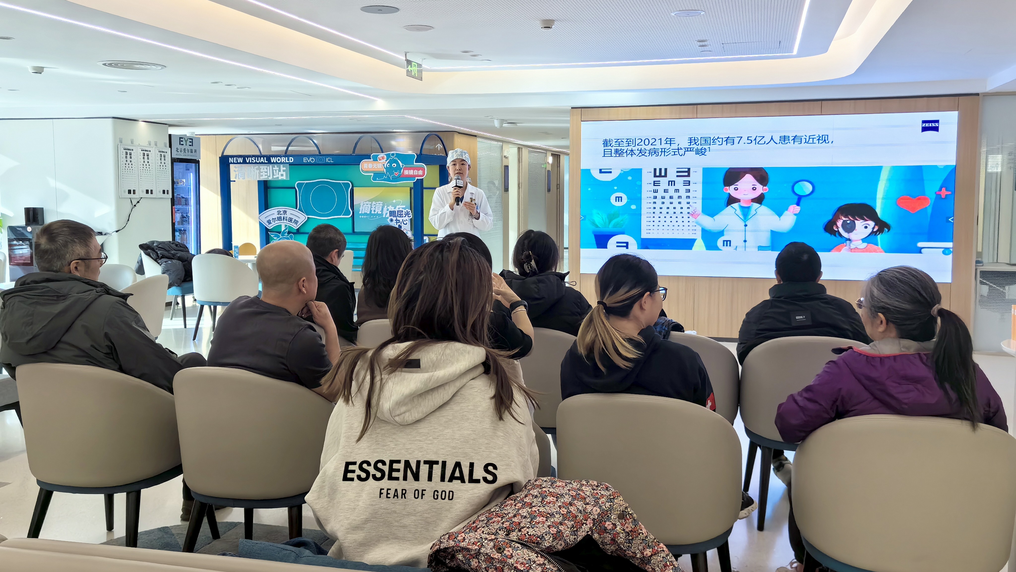活动现场,屈光科主治医师韩钰博士带来了精彩的科普讲座。韩钰博士长期从事近视及散光的手术矫正工作,擅长准分子激光原位角膜磨镶术、飞秒激光小切口角膜基质透镜取出术、个性化近视激光矫正手术、周边角膜松散散光矫正术等,拥有丰富的临床经验。她用通俗易懂的语言,深入浅出地讲解了微创全飞秒精准4.0-VISULYZE技术的原理和优势。